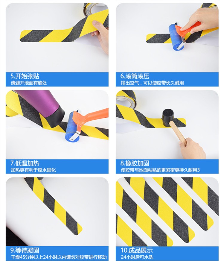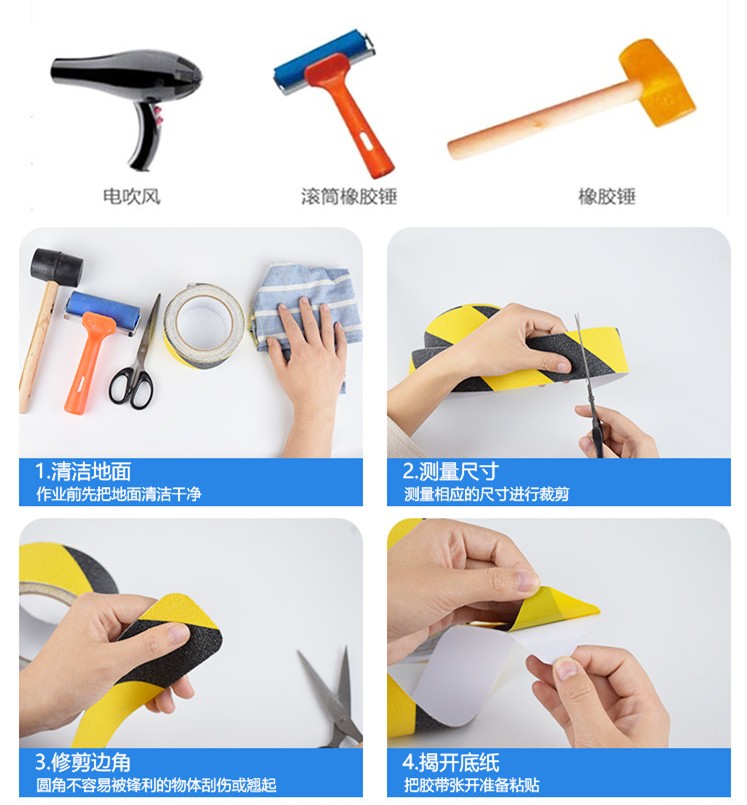 2、安全防滑貼使用時具有壓力敏感性和強力粘合性,使用方便快捷,可以快速粘合,能夠極好地附著在許多不易附著的表面。并且對于很多的化學成分有很好的耐腐蝕性,同時具有較強的防水性、防油性、耐溫性的特點。