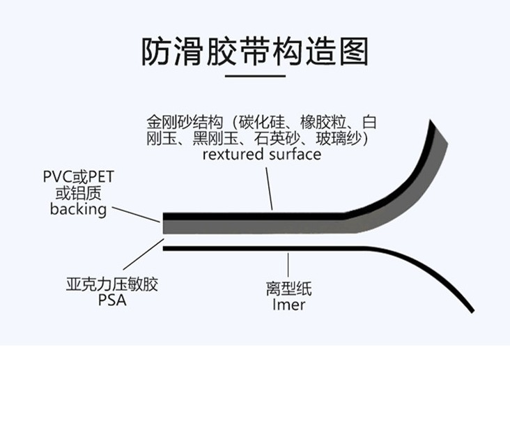 3、安全防滑貼選材范圍廣,充分滿足各種消費需要。可選基材包括PVC、PP、PET、合成紙等材料,可選沙粒包括黑剛玉(金剛砂、氧化鋁顆粒),熒光砂、碳化硅,橡膠、乙烯基、玻璃沙、石英砂、橡塑防滑纖維、無砂材料及特種防滑貼等。