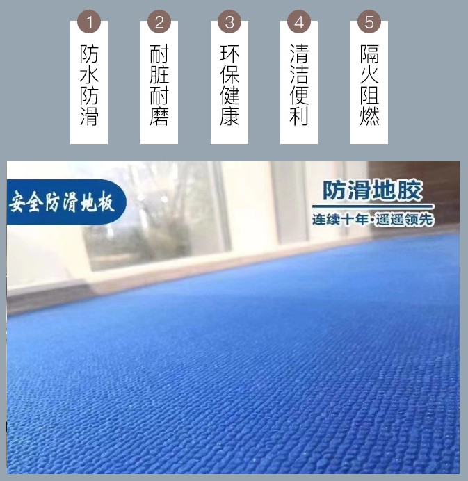 ?規格尺寸:安全防滑地板系列有兩種不同規格和厚度:2.2mm*1.8m*15m、2.9mm*1.8m*15m,按客戶要求面積定制